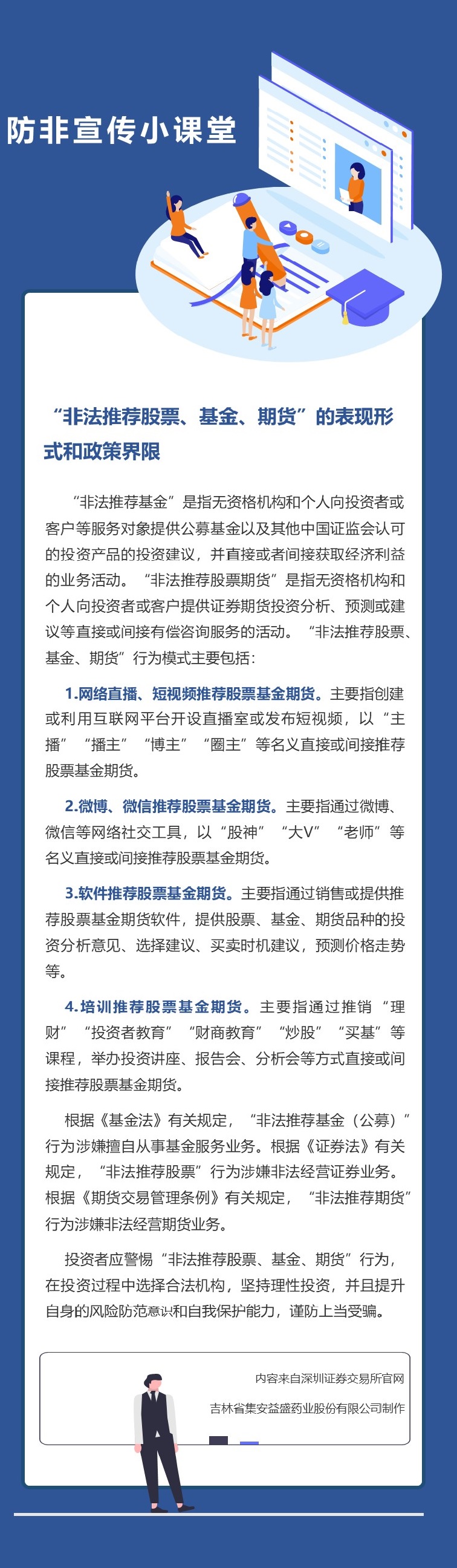 益盛藥業(yè)提示您:樹立正確理財觀念,提高風(fēng)險意識,防范非法集資,倡導(dǎo)理性投資,不盲目跟風(fēng)。依法行使權(quán)力和履行義務(wù),不參加非法證券和洗錢犯罪活動,提高自我保護能力,樹立正確投資理念。
