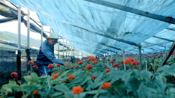 (在遮陽棚下照看漢參的種植者)